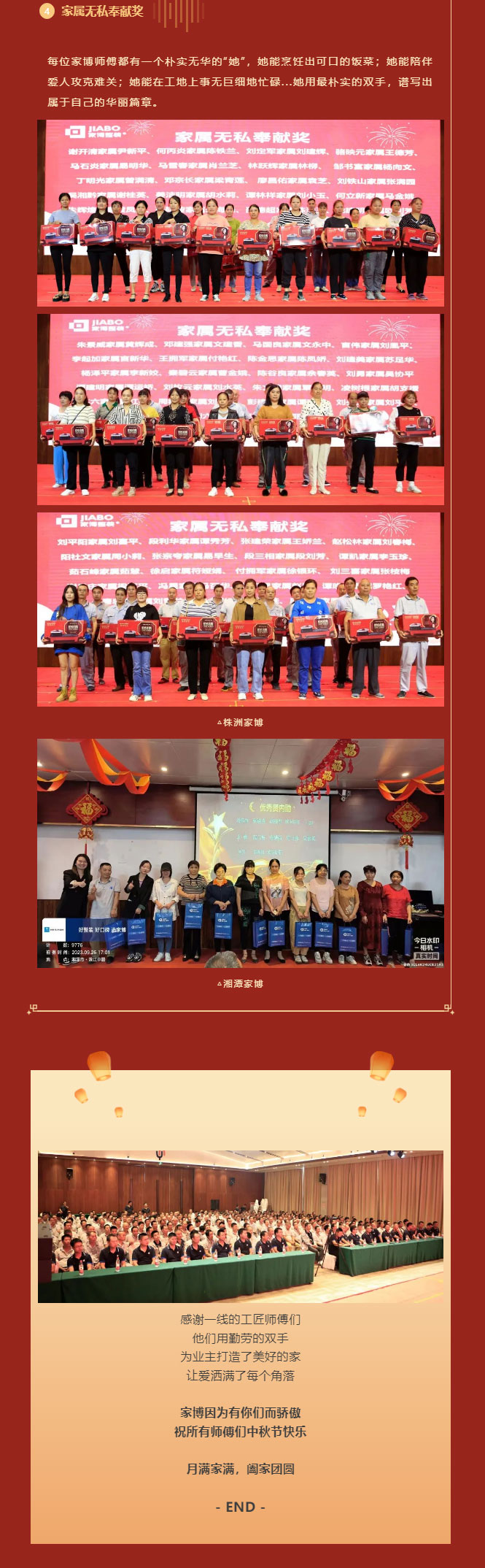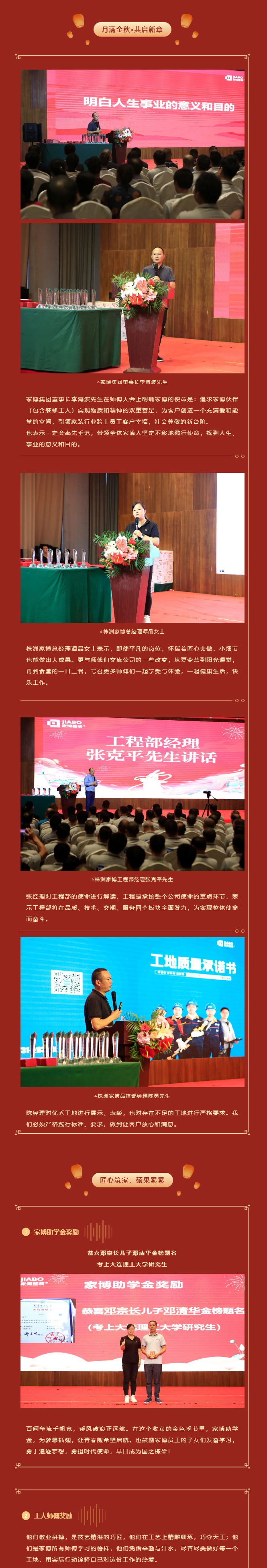 當(dāng)前位置 : 網(wǎng)站首頁(yè) > 公司動(dòng)態(tài) > 匠心精筑,家國(guó)同慶 | 2023年家博整裝中秋師傅大會(huì)圓滿舉行