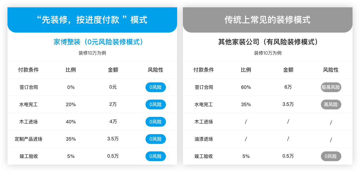 簽了合同,裝修公司給到業(yè)主的只是一紙合同、一個承諾!只有“先裝修,按進度付款”的模式,讓裝修公司先干活,業(yè)主后交錢,才是真正的0風險裝修!