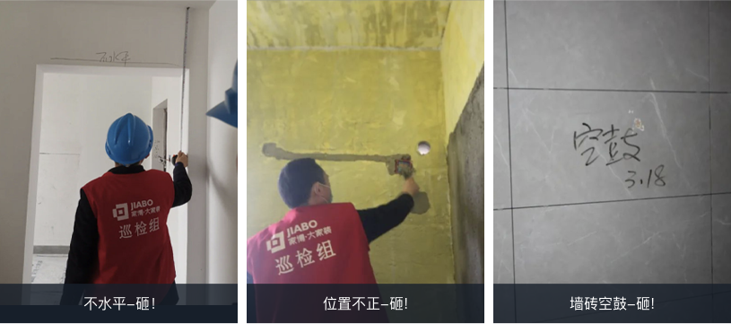 空鼓、對縫不齊等現(xiàn)象,現(xiàn)場立即砸掉重做,