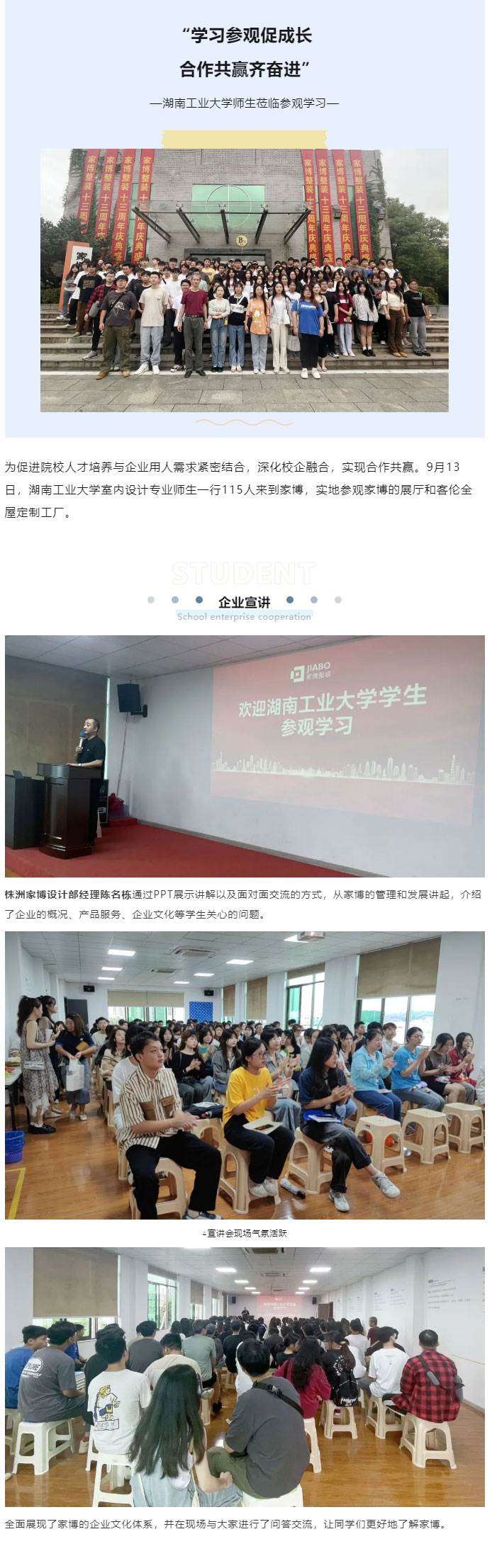 當(dāng)前位置 : 網(wǎng)站首頁(yè) > 裝修資訊 > 校企合作 | 湖南工業(yè)大學(xué)師生蒞臨家博參觀(guān)學(xué)習(xí)